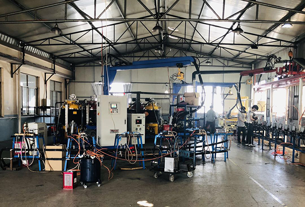 聚氨酯發(fā)泡機(jī)本身是不能憑空產(chǎn)出泡沫來(lái)的,它是將空氣引入發(fā)泡劑水溶液中均勻分散,實(shí)現(xiàn)液氣盡可能大的接觸面,以使發(fā)泡劑中的表面活性物在液膜表面形成雙電層并包圍空氣,形成一個(gè)個(gè)氣泡
